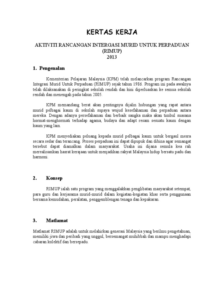 Kertas Kerja Rancangan Integrasi Murid Untuk Perpaduan Rimup