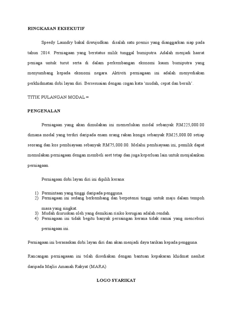 Contoh Kertas Kerja Perniagaan Dobi Untuk Rujukan Bisnes Anda Sendiri Blog Sabree Hussin