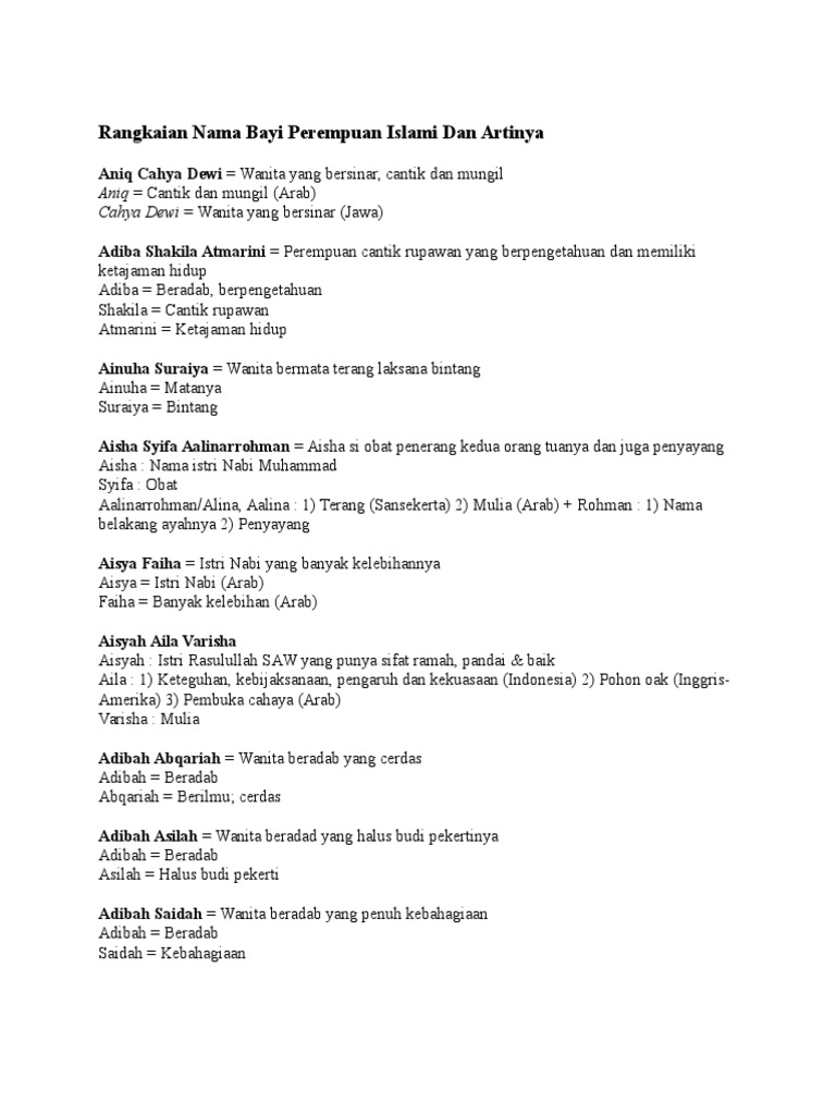 35 Kumpulan Nama Bayi Perempuan Islami Dan Artinya Lengkap Kitabnamabayi Comkumpulan Arti Nama Bayi 2 3 Kata Unik Keren