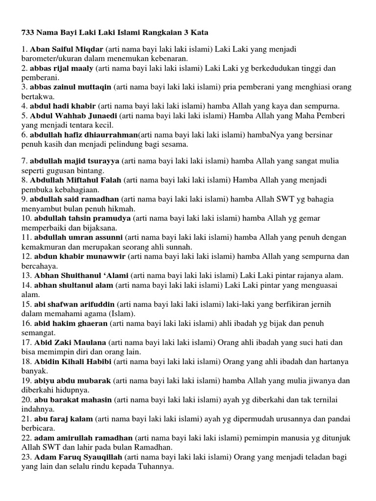Rangkaian Nama Bayi Laki Laki Islami 3 Kata Kitabnamabayi Comkumpulan Arti Nama Bayi 2 3 Kata Unik Keren