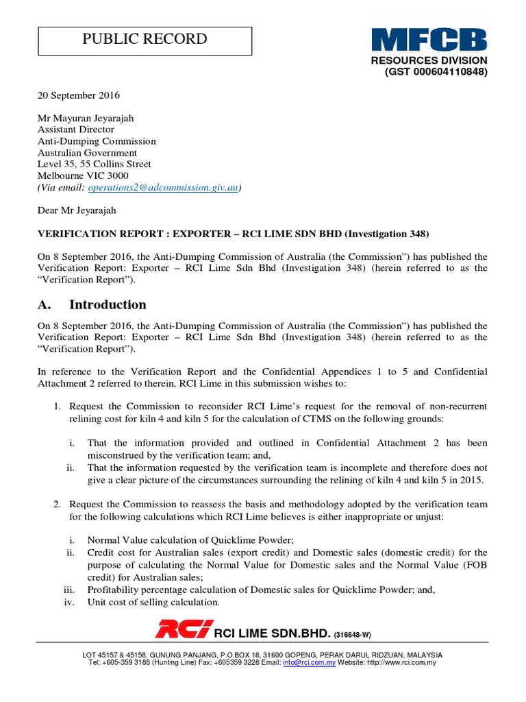 Rci Lime Sdn Bhd Dumping Pricing Policy Prices
