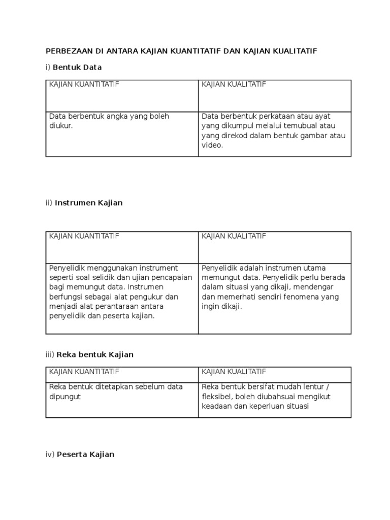 Doc Perbezaan Di Antara Kajian Kuantitatif Dan Kajian Kualitatif I Bentuk Data Tamao Serizawa Academia Edu