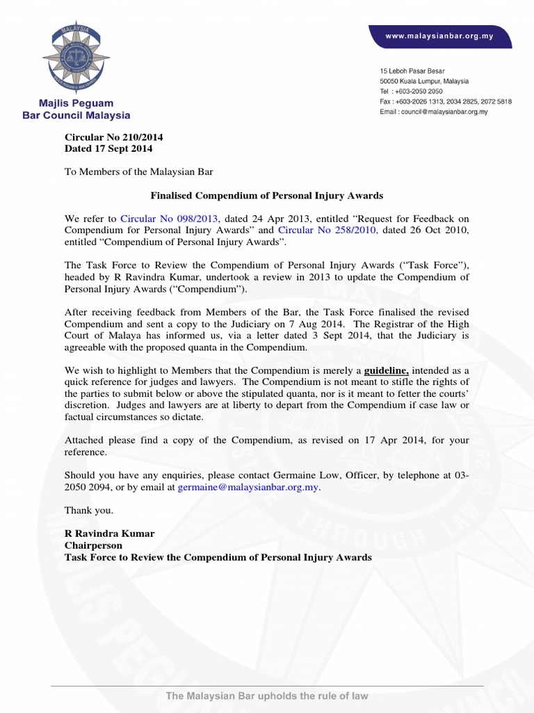 Majlis Peguam Bar Council Malaysia Compendium Of Personal Injury Awards Pdf Free Download
