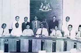 Gambar di atas merupakan barisan kabinet pertama semasa tunku abdul rahman pada tahun 1959 1. Akhirnya pada 30 ogos 1957 tepat pukul 12 tengah. Setelah kemenangan parti perikatan dalam pilihan raya umum 1955 tunku abdul rahman bersama satu rombongan telah ke london untuk membuat rundingan tentang kemerdekaan pada januari 1956.