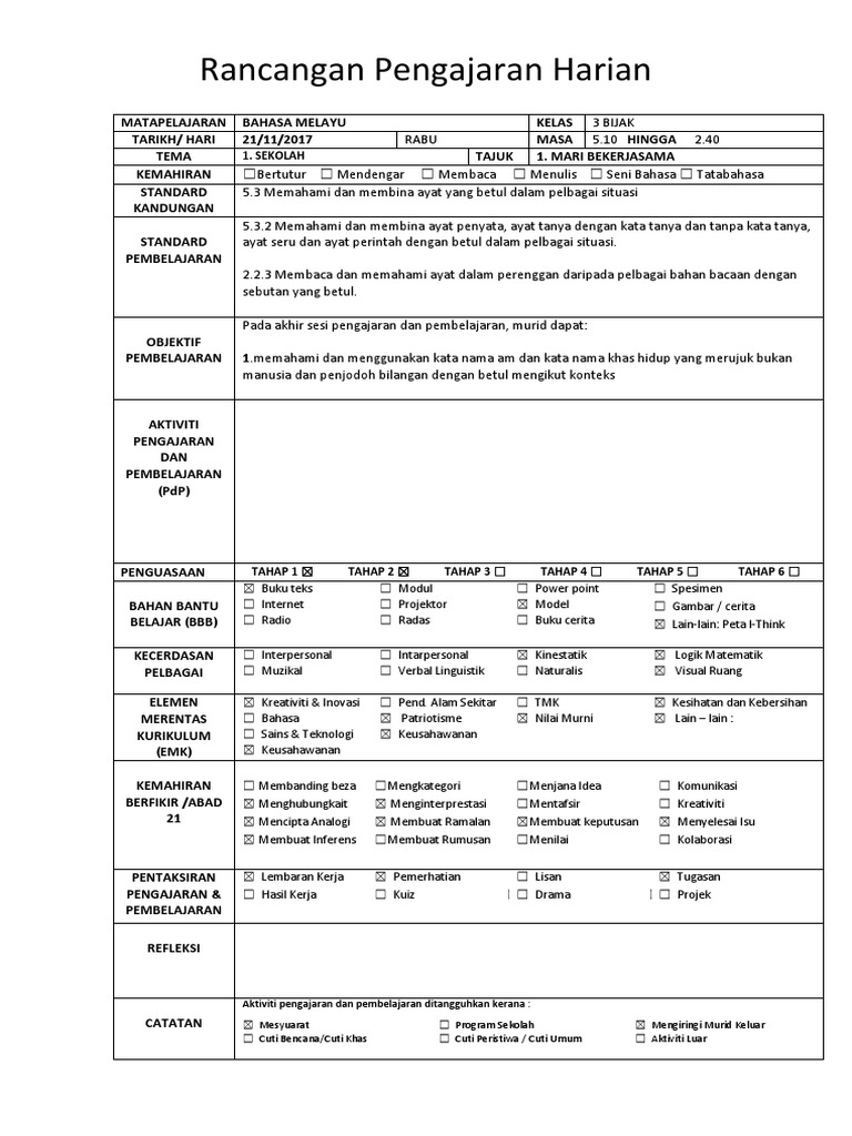 Rancangan Pengajaran Harian Panitia Bahasa Melayu Sk Bukit Balacon Mata Pelajaran Bahasa Melayu Kelas 5 Intelek Tarikh Templates Critical Thinking Education