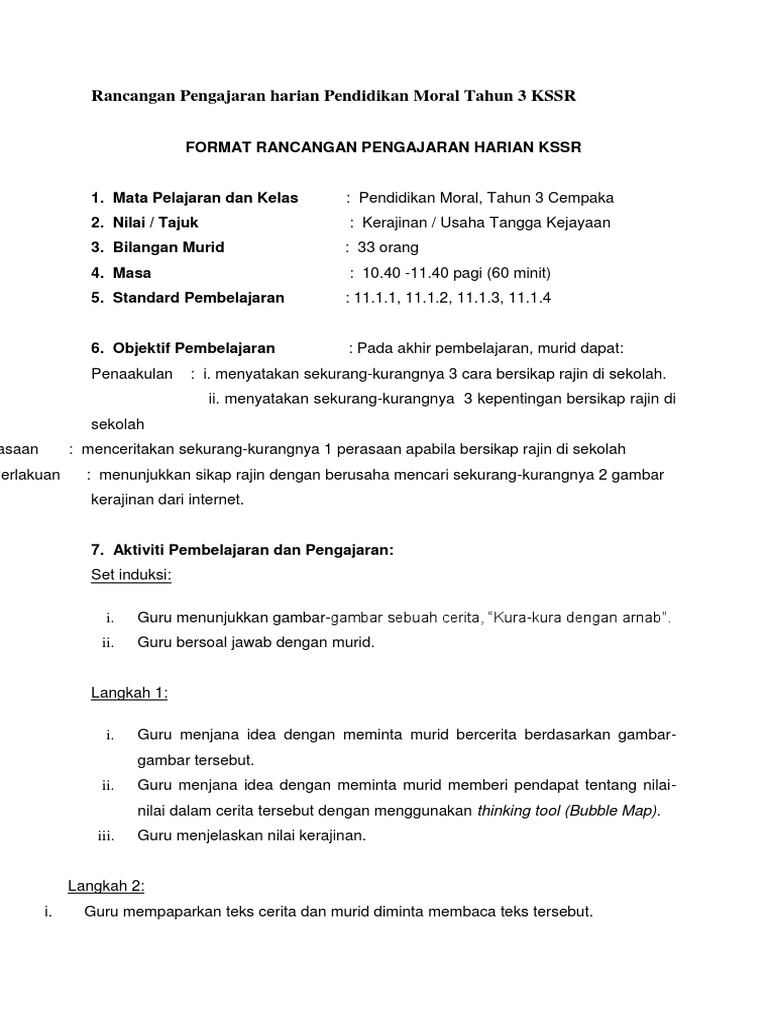 Download Rpt Pendidikan Moral Tingkatan 3 Terbaik Templat Rancangan Pengajaran Harian Rph Pembelajaran Abad Ke 21 Skoloh