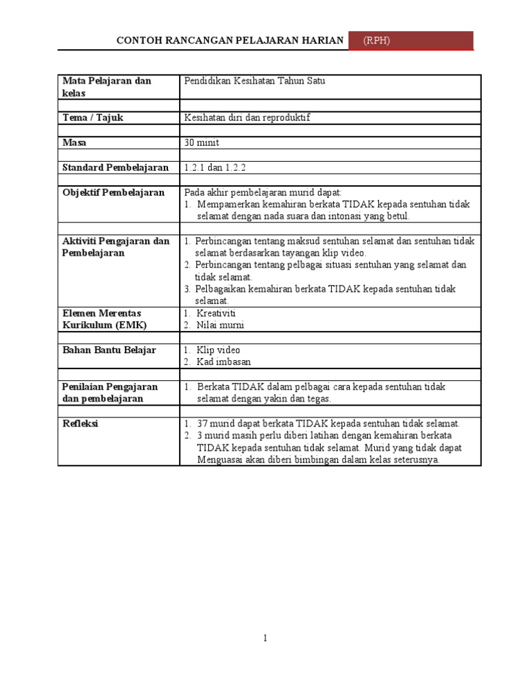 Rancangan Pengajaran Harian Pendidikan Kesihatan