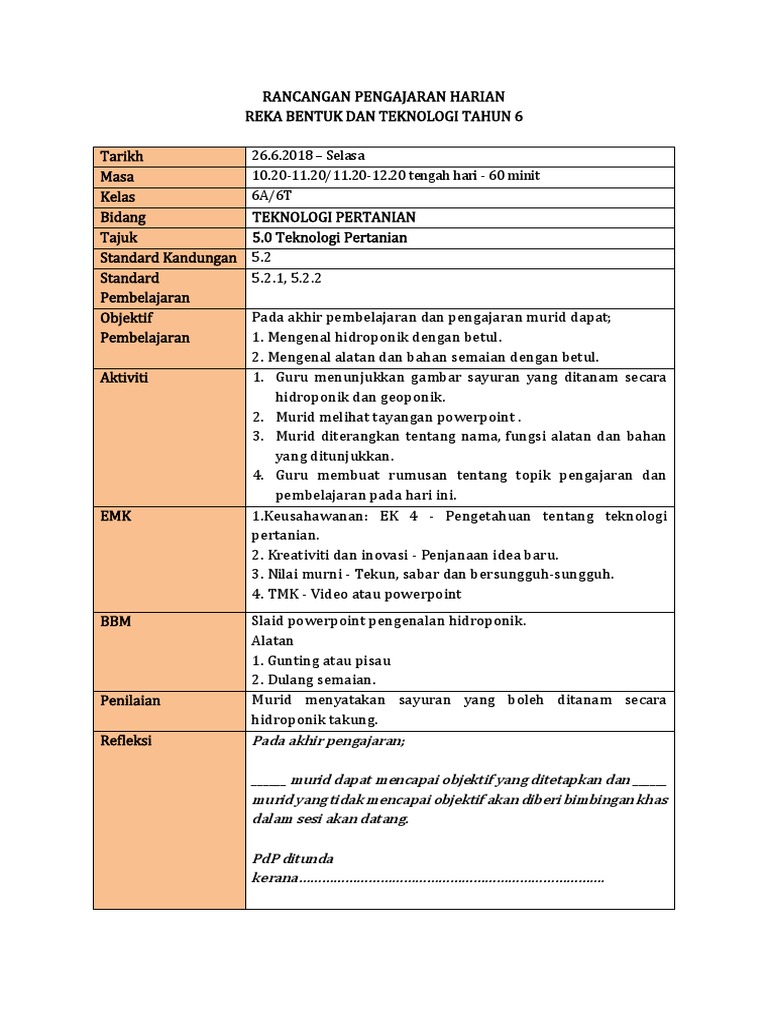 Rancangan Pengajaran Harian Rbt Tahun 4