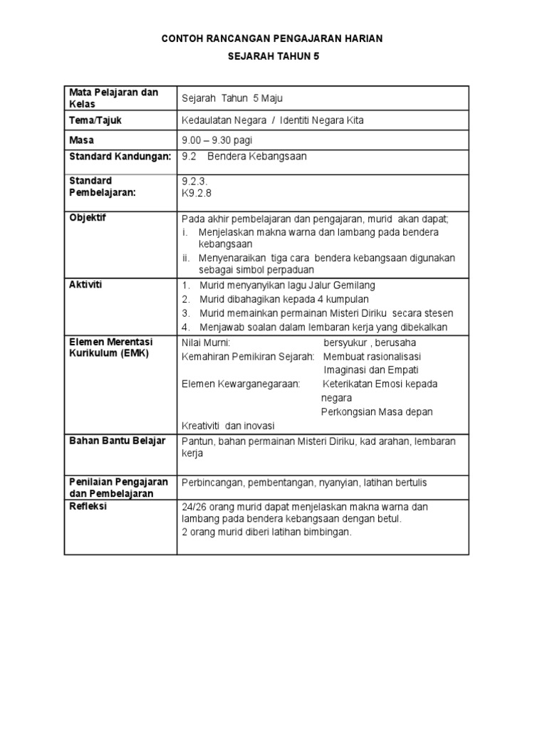 Doc Rancangan Pengajaran Harian Sejarah Muhammad Fadzli Ramli Academia Edu