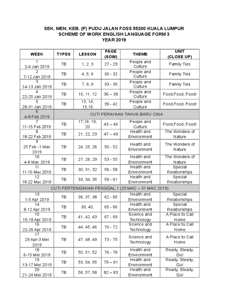 It S My Life Scheme Of Work English Form 3 2018 Rpt Bahasa Inggeris Tingkatan 3 2018