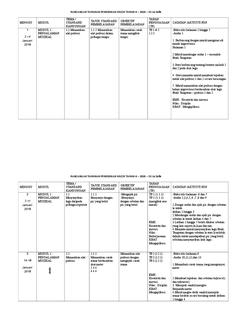 Rpt Pendidikan Muzik Tahun 6 Sumber Pendidikan