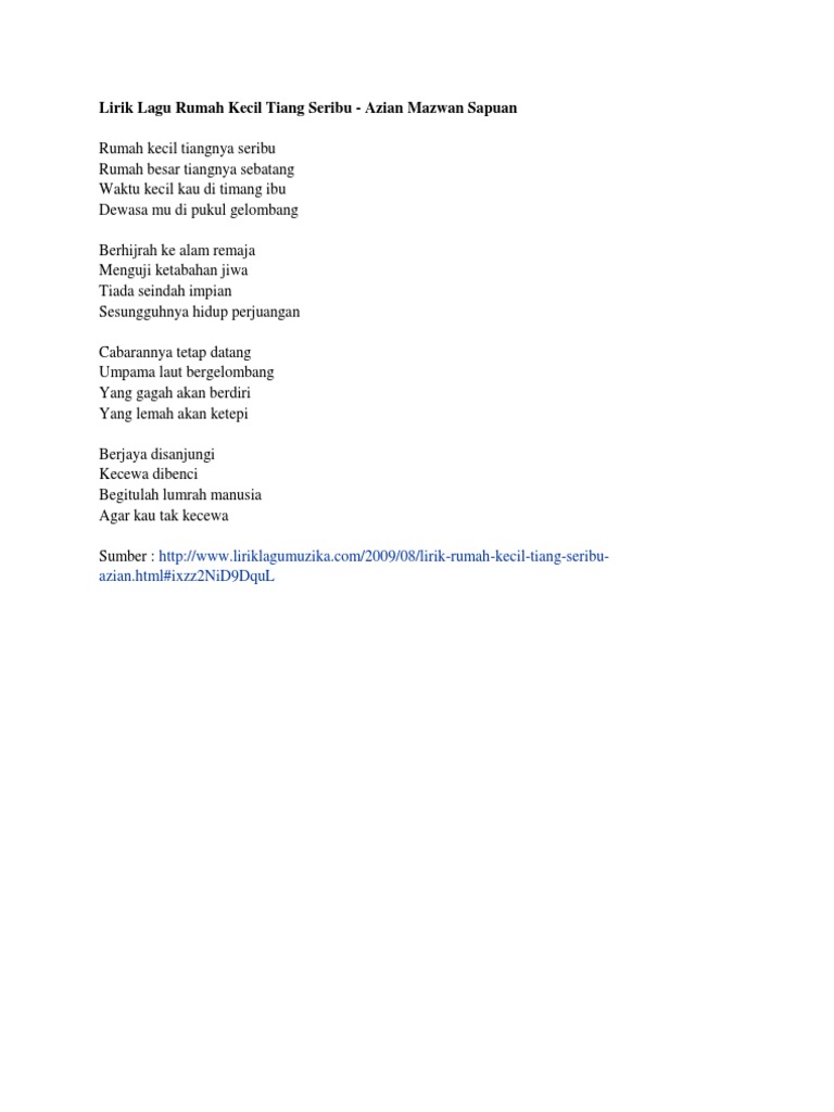 Azian Mazwan Rumah Kecil Tiang Seribu Lyrics Musixmatch