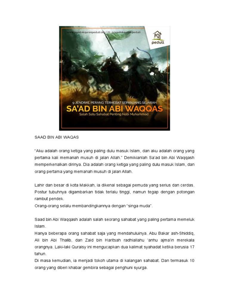 Sa D Ibn Abi Waqqas Ra Agama Langit