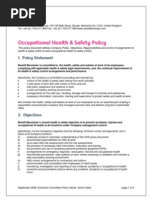 Health And Safety Policy 17 09 Doc Pdf Occupational Safety And Health Safety